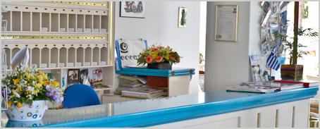 We offer our warm hospitality and family atmosphere. Our location in the center of Karpathos town which makes it convenient for our guests to reach the harbor, restaurants, supermarkets, cafeterias, hospital, police, banks, the city hall, the provincial building, archaeological sites and the night life of the island within walking distance.